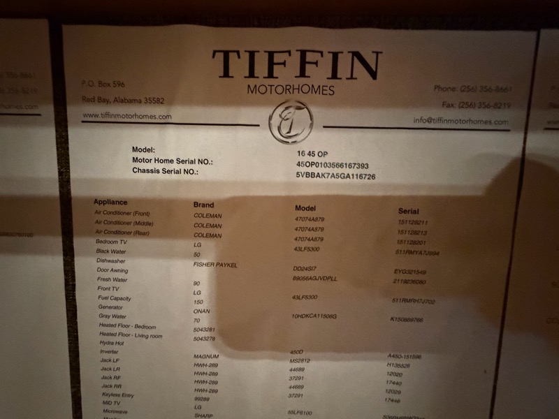 $239,995 – 2016 Tiffin Allegro Bus 45OP – Call 832-492-1075 , 45k miles , 450 Cummins , 1.5 Bath, Aqua Hot, Fire Place , Heated Floors , All Electric, 3 acs , king bed , Stackable washer & dryer, power cord reel , power fresh water hose reel, dual Girard awnings, window awnings, 20/21 Michelin tires LOOK EXCELLENT, 2025 Batteries , will have a fresh service done ! Call RV Lenny at 832-492-1075 located in Houston Tx at Top Choice RV